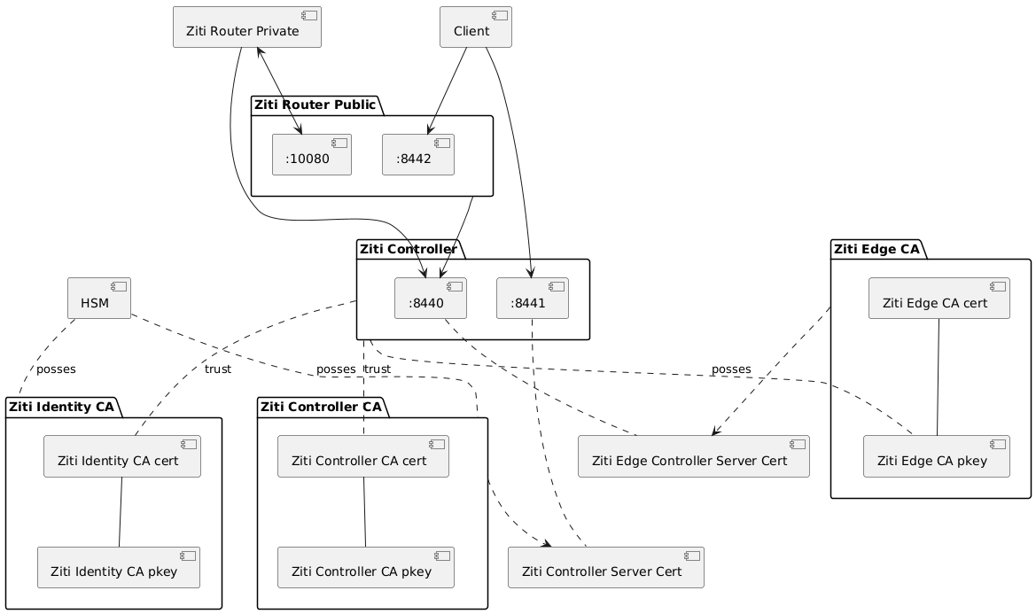 - What's the idea of splitting up the root CA into bunch of intermediates if Ziti controller has to have all of them? Meaning no 'decentralized' approach for intermediates.