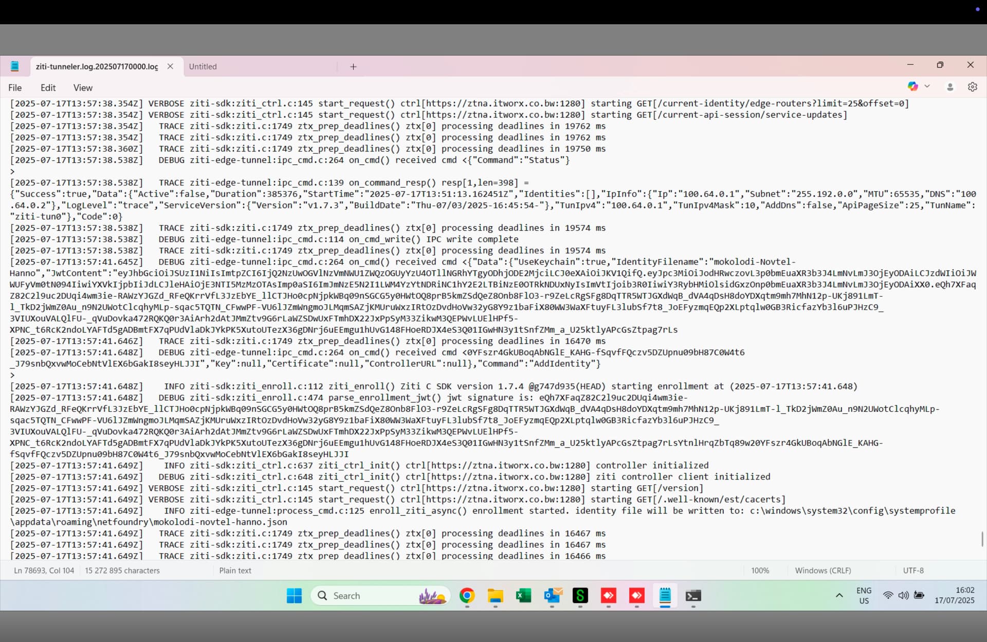 We're encountering an issue with a user in South Africa who is unable to use the OpenZiti network. They are able to enroll their identity successfully, but the connection to the controller only happens once — after that, it fails to reconnect.